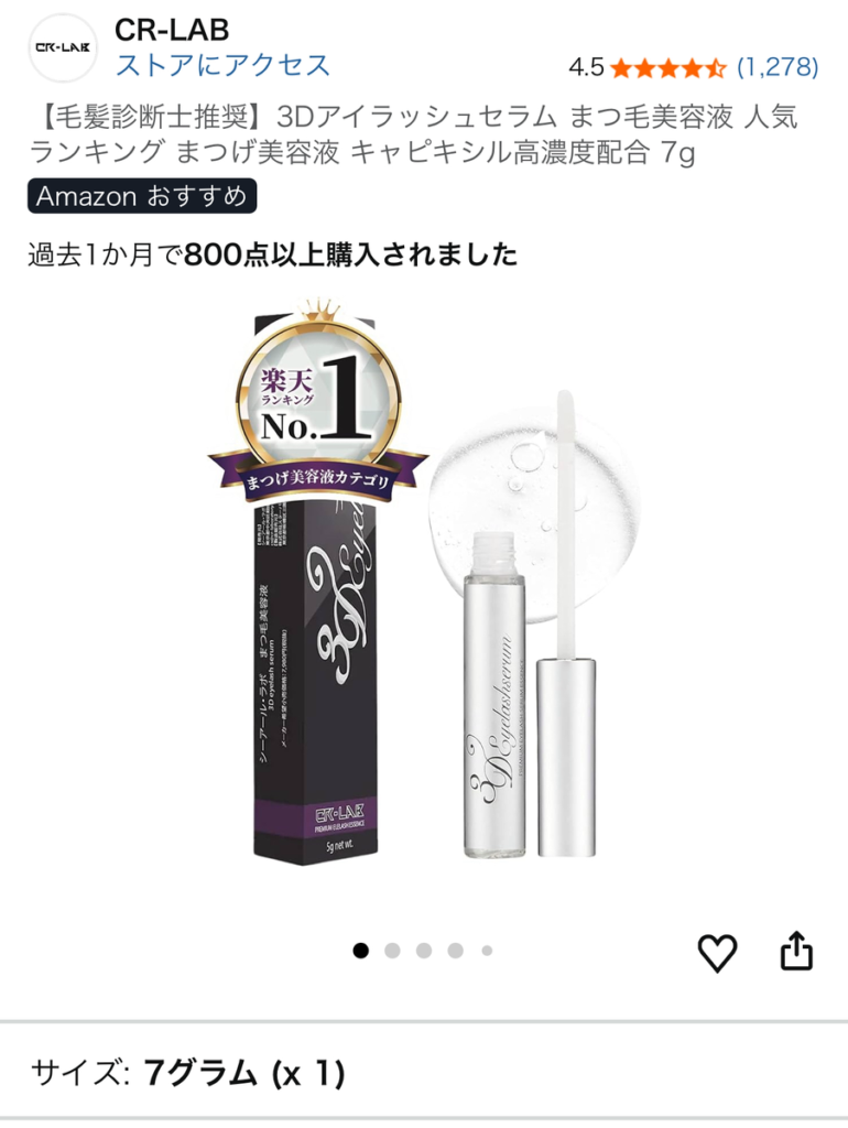 3Dアイラッシュセラムは、Amazonでの購入が推奨されており、他の通販サイトや店舗では在庫が不安定なことも多く、確実に購入できるのはAmazonのみと言ってよい状況です。