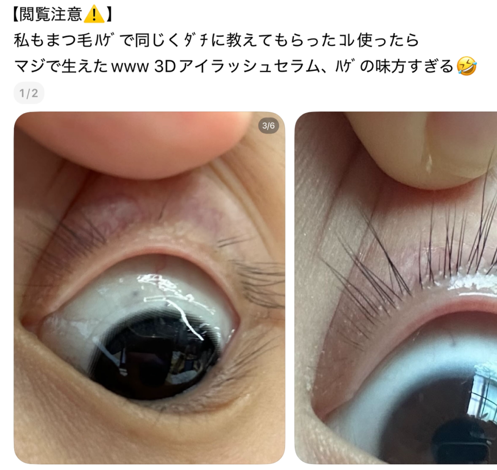 TikTokやX、Threadsでやたら見かける「3Dアイラッシュセラム」。