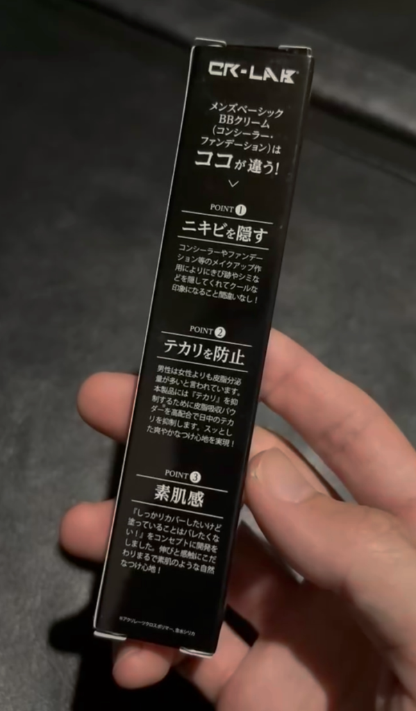 製品企画段階から日本人男性の肌色・皮脂量・毛穴感を前提に最適化。一般的なBBより粘度は軽め・伸びは良好・密着は高めのバランスで、薄塗りでもカバーが乗るから重ねる必要がありません。